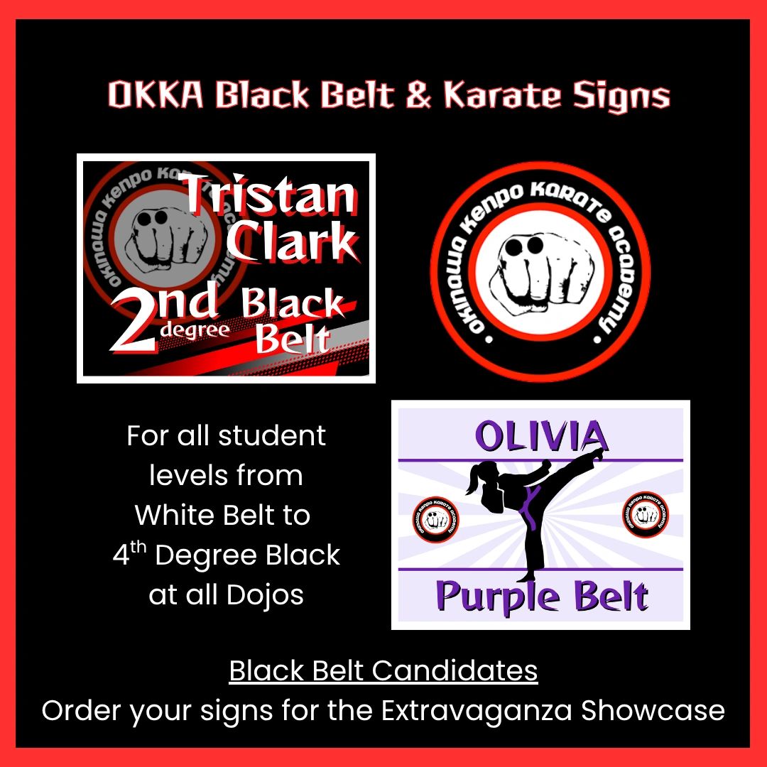 BLACK BELT CANDIDATES: Order your signs for the Extravaganza Showcase, today!